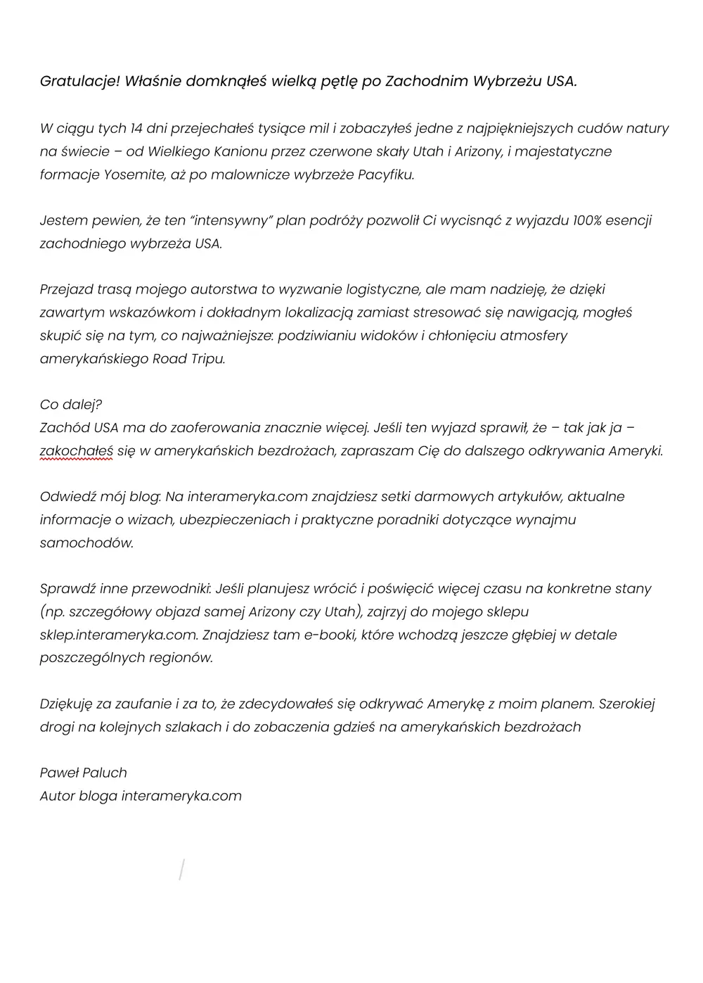 Jeśli jednak szukasz spersonalizowanego planu podróży po klasycznym West Coast – zapraszam do kontaktu.